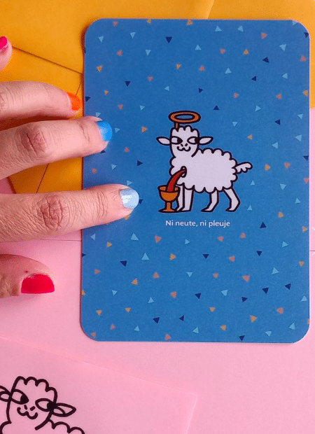 Postkaart in A6-formaat in sprinkel-sprankelend blauw met afgeronde hoeken.